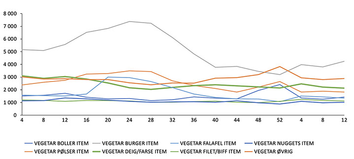 Segmentenes verdisalg innen kjølt kjøtterstatning siste år